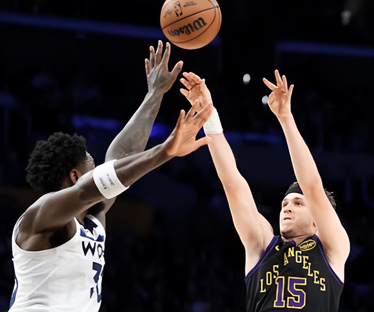湖人和森林狼是今天最晚结束的场次,詹姆斯因伤继续缺阵,湖人派出了东契奇+里夫斯+艾顿+八村垒+斯马特的首发阵容,森林狼派出了爱德华兹+兰德尔+麦克丹尼尔斯+迪温琴佐+戈贝尔的首发。首节湖人的手感不佳,单节只有16分,森林狼也没有好到哪里,只拿到了21分。次节湖人的进攻回暖,东契奇命中两记三分,艾顿在内线连续终结,8投6中拿到了12分5篮板,他的强硬帮助湖人在半场结束的时候抹平了分差。